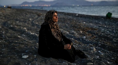 Amoun, 70, a blind Palestinian refugee who lived in the town of Aleppo in Syria, rests on a beach moments after arriving along with another 40 people on a dinghy in the Greek island of Kos, crossing a part of the Aegean Sea from Turkey to Greece, August 12, 2015. REUTERS/Yannis Behrakis
