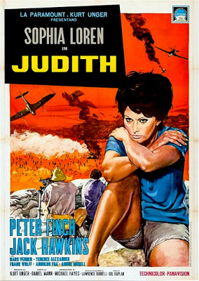 It doesn’t take too much smartness to see what Sophia Loren is doing in Judith, an adventure picture that came to the Music Hall yesterday. She is lending her name and her presence to a routine cloak-and-dagger film that, without her, would get no more attention — and would deserve no more — than a quickie on the lower half of a double bill. Even with her and with all the cold hostility she brings to the hard, contentious role of a Jewish woman compelled by the Haganah (the Jewish underground forces) to do a crucial, clandestine job for them in Palestine in 1948, it comes out a disappointing picture, more lurid and loud than lustrous, and certainly much more of a fiction than an illusion of what might have taken place. — Bosley Crowther, 1966.