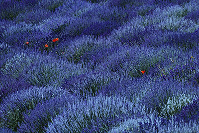 FRANCE. Provence. 1980. Field of lavender and corn poppies.
