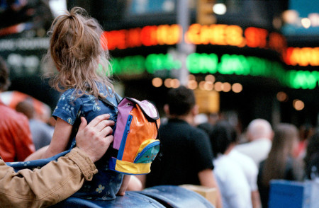 0 2021-10-01 Written by Pop9 USA. New York City. 2002. Times Square. A father shows the square to his daughter.