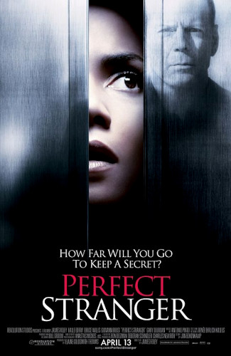 “Dangereuse Séduction”, à base de chantage, meurtres rituels, scène primitive enterrée et SM, nous traîne sur les traces d’une fouille-merde rêvant Pulitzer (Halle Berry) dans les cyberpoubelles d’un psychoréclamiste. Joué par Bruce Willis, qui ne va pas fort (moumoute et surcharge pondérale), ce play-boy se cachant de bobonne pour courir la présoixantaine fait peine (…) Le sort de “Perfect Stranger” est scellé : “séduction” inoffensive. — Bayon