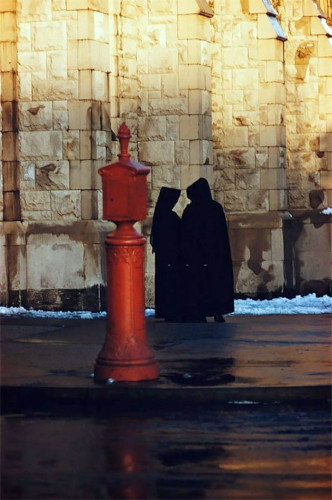 Nuns outside a church.