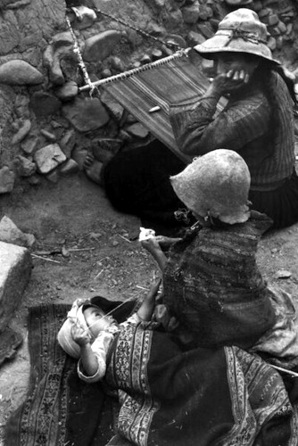 0 2023-04-08 Written by Pop9 Quechua Mother Watching Her Children Weaving and Spinning, near Pisac, Peru