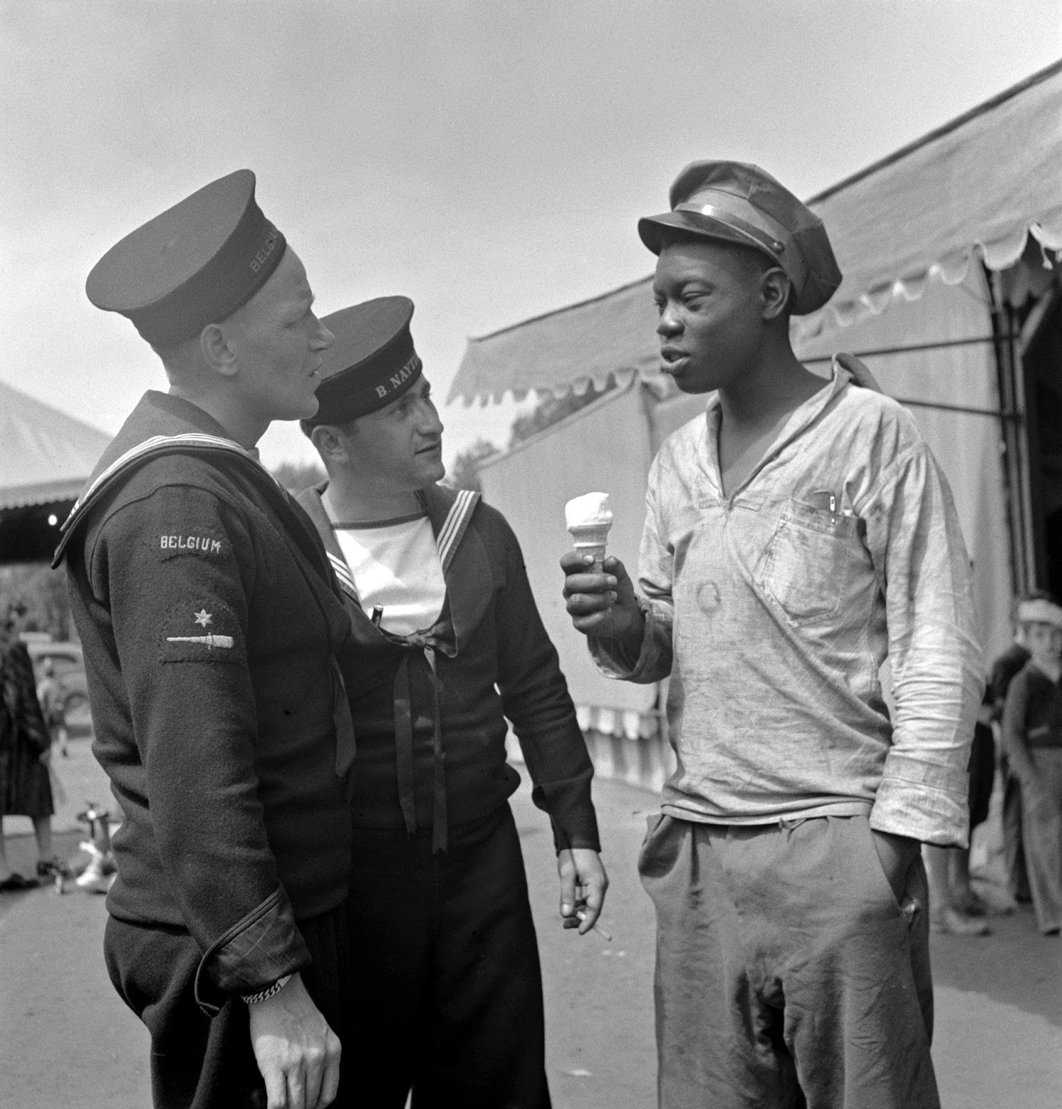 0 2023-10-142023-10-14 Written by Pop9 Belgian and Greek sailors talking with a Negro worker at the carnival during United Nations week. Oswego, New York.