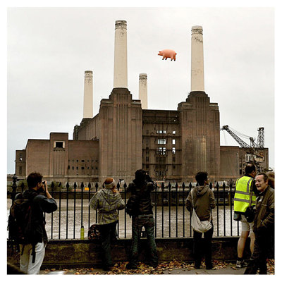 A giant inflatable pig flies above Battersea Power Station on the banks of the river Thames in London, during a recreation of the cover of the Pink Floyd album ‘Animals’ – released 35 years ago – to celebrate the release of ‘Why Pink Floyd’, a digitally remastered box set of all 14 Pink Floyd studio albums.
