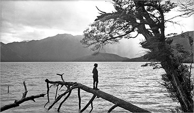 0 2024-01-112024-01-11 Written by Pop9 Woman standing on a fallen tree, shores of Lake Hauroko, Southland, 1930s.