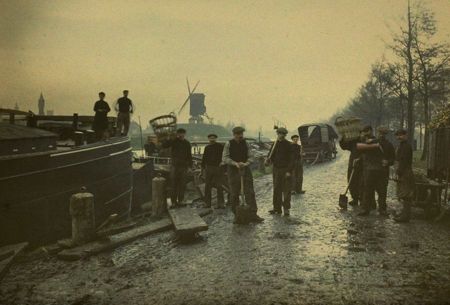 Winter at Brugge unloading barge
