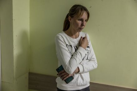 0 2025-04-232025-04-05 Written by Pop9 Olha Holenko, 38, wife of Oleksandr Udovychenko, a civilian man who was injured in a Russian missile strike on Poltava (on September 3), poses for a portrait in a hospital corridor in Poltava, Ukraine on September 5, 2024.