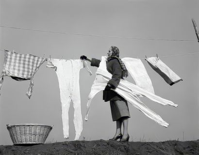 1950s Housewife Removing Frozen Laundry