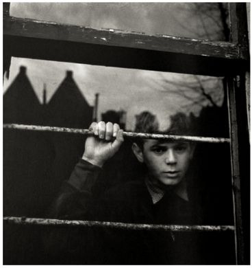 Tom looking out of train window
