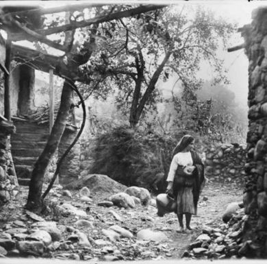 Camponesa na chegada a casa na Lousã